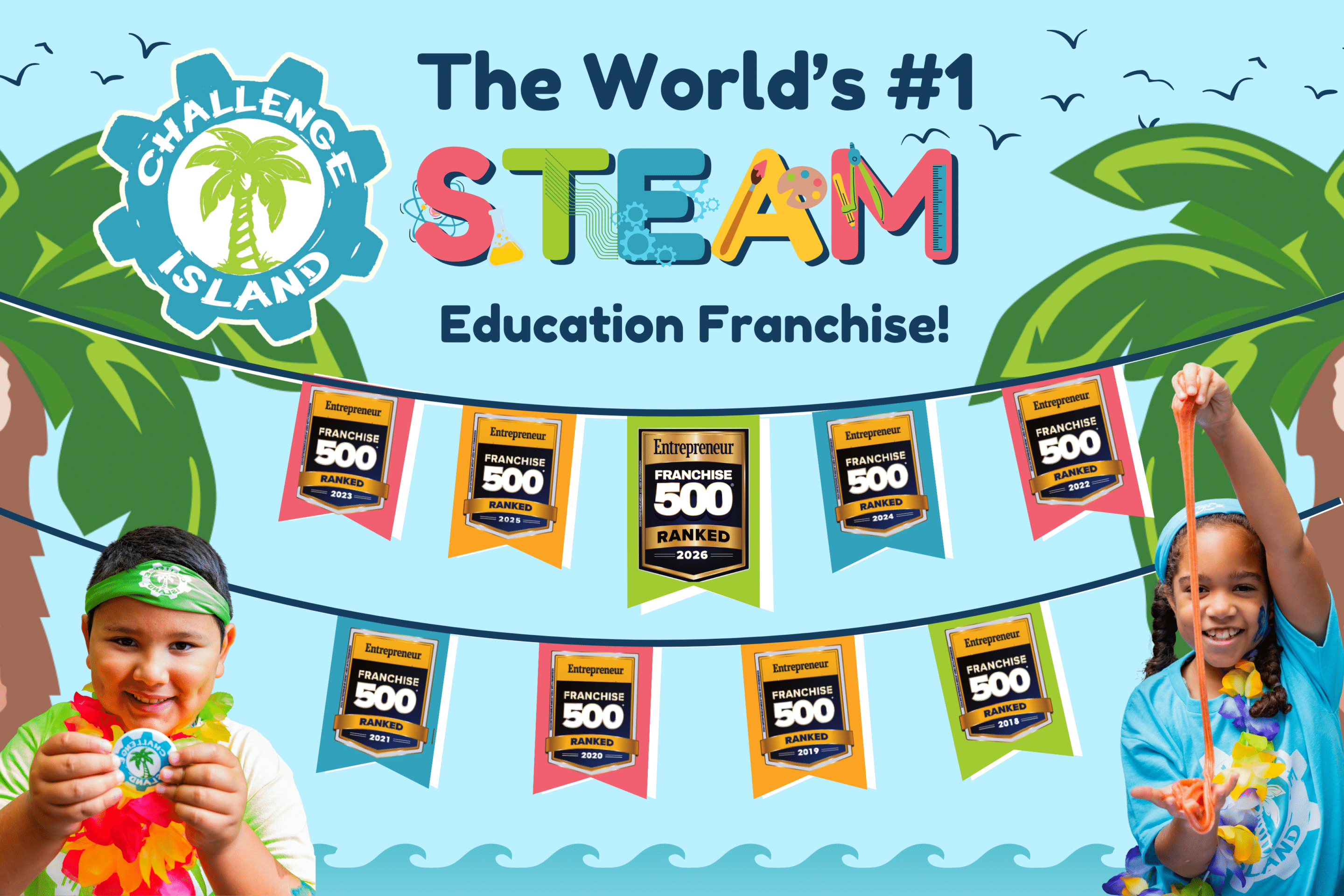 Whimsical island ambience combined with cross-curricular themes make the Challenge Island experience an unforgettable adventure.